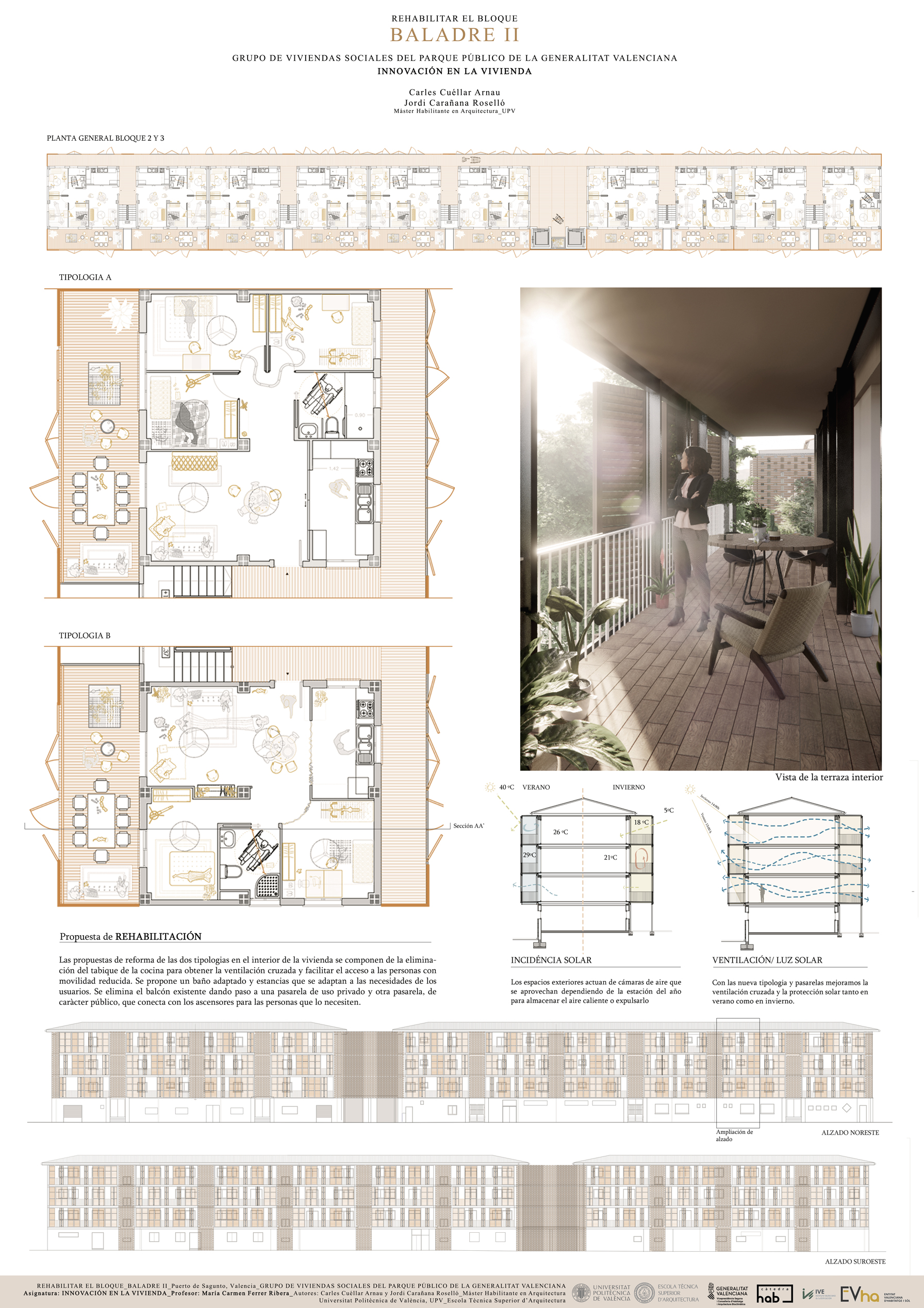 SeguirSeguir Càtedra Innovació en Habitatge Convocatorias. Formación. Difusión. Asignatura optativa 2023/24 Rehabitar el bloque:Grupo de viviendas sociales del parque público de la Generalitat Valenciana Trabajos finales Grupo 1_Miriam Alonso, Adreea Isvoranu, Emma González Grupo 2_Lucía Toichoa Obiang, Andrés Calatayud Milán Grupo 3_Víctor García, Juan Múzquiz, Alejandro F. Moreno Grupo 4_Matilde Paolocci, Rodolfo Martini, Matthieu Scandella Grupo 5_Anna Juan Fonts, José Ángel Sánchez Alcaraz, Laura Sigüenza García Grupo 6_Lorena Carcelén García, Rubén Jiménez Méndez, Sofia Maria Mari Alcaraz Grupo 7_Carles Cuéllar Arnau, Jordi Carañana Roselló Grupo 8_Daniel Ricarte Albors, Sergio Baños Arroyo